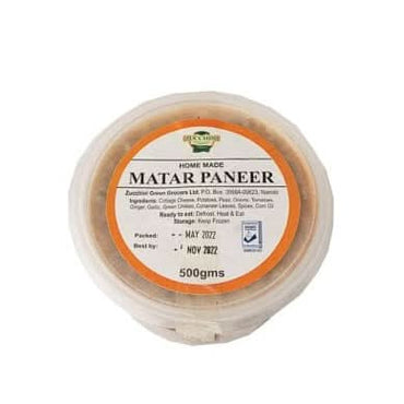 Ingredients: Cottage Cheese, Coriander leaves, Spices, Corn Oil, Peas,Onions Tomatoes, Ginger, Garlic, Green Chilies Ready to Eat: Defrost, Heat and Eat Storage: Keep frozen