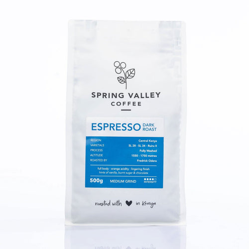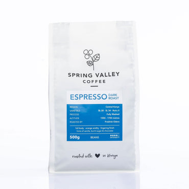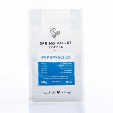 Spring valley coffee was established in 2009 in a Nairobi neighborhood historically renowned for its coffee estates. Intensity Full body. Orange acidity. Lingering finish, hints of...